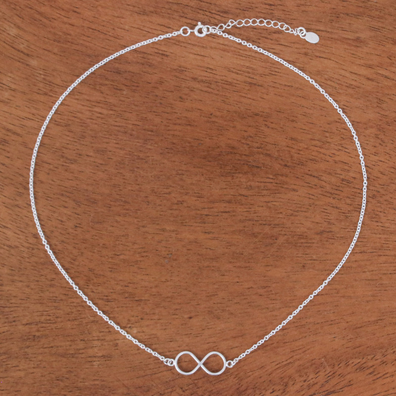 Luminous twists form this pendant necklace from Thailand, crafted from sterling silver in the shape of an infinity symbol. Presented by Pichaya, the accessory is the perfect complement for formal or casual occasions thanks to its radiant look.
