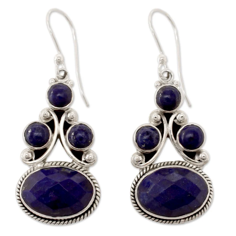 It was once believed that if one dreamt of lapis, it foretold love would be forever truthful. Neeru Goel treasures this legendary gem in the regal design of these earrings. They are crafted by hand featuring sterling silver settings.