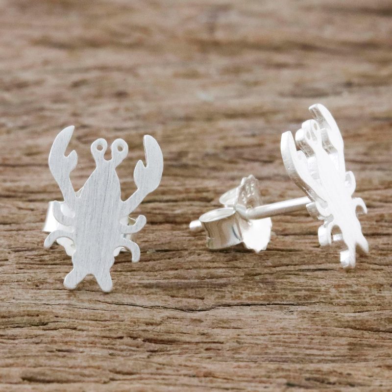 Lovers of crustaceans will adore this charming pair of stud earrings from Thailand. Artisan Sarote Lochotinunt handcrafts the cute dancing lobsters from sterling silver, completing the charming design with a shimmering brushed-satin finish.