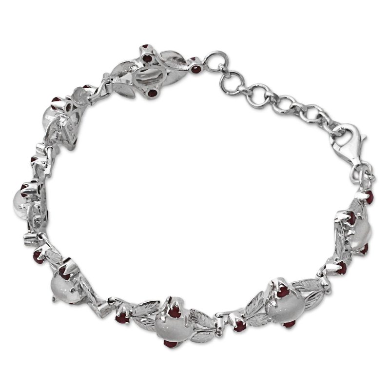 You can find our moonstone and ruby link bracelet 'Moon Red' by Alok Jain in jewelry categories such as Leaf and Tree Bracelets, Birthstone Bracelets, Moonstone Bracelets, Ruby Bracelets and Silver Bracelets. Enjoy exploring these sections for other Novica treasures.
