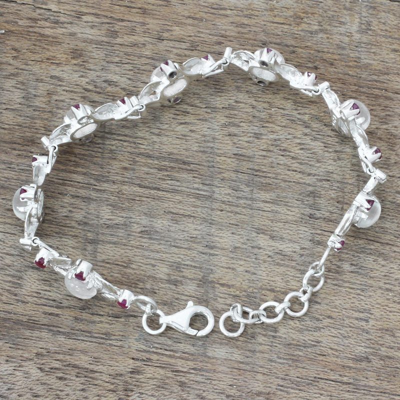 Backed by our 100% Happiness GuaranteeSparkling rubies and glowing moonstone adorn a trendy link bracelet. India's Alok Jain works with local artisans to present this design, which is handcrafted from sterling silver.