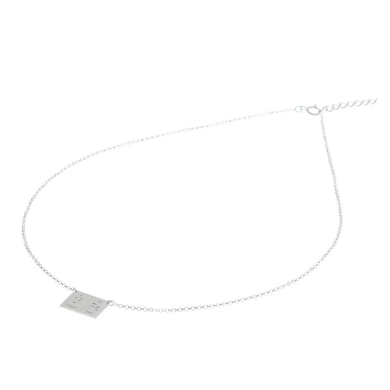 Sarote Lochotinunt crafts a whimsical necklace engraved with the chemical formula for the elements. The first letters spell out the word "life." Working in sterling silver, the Thai artisan demonstrates his versatility and creativity.