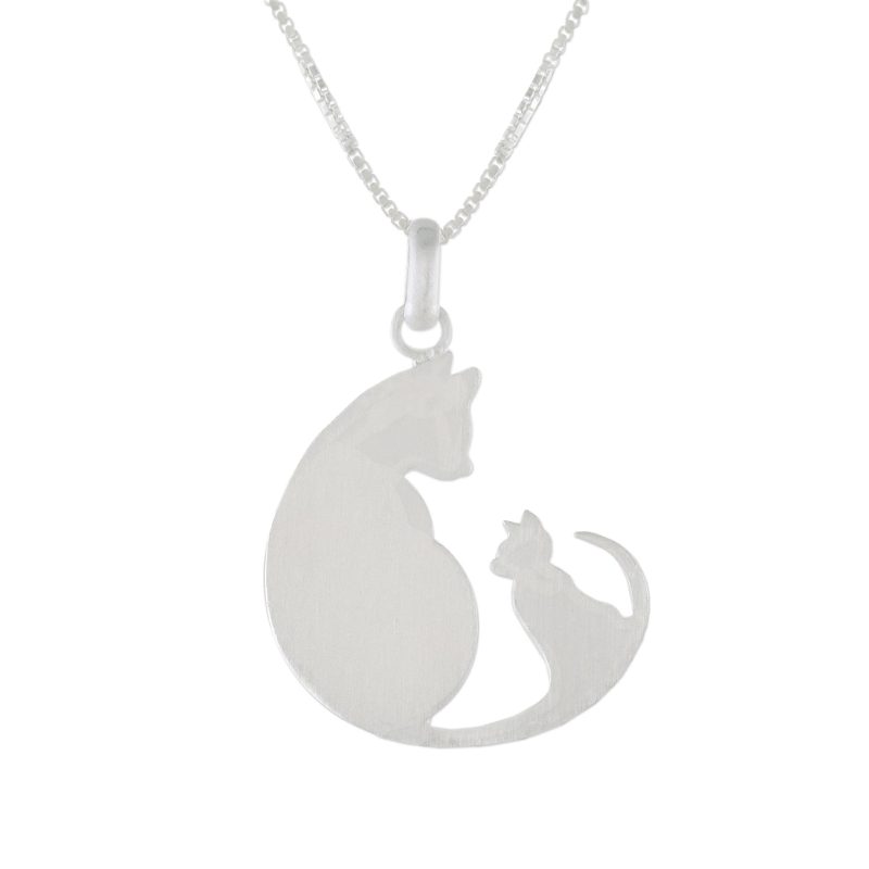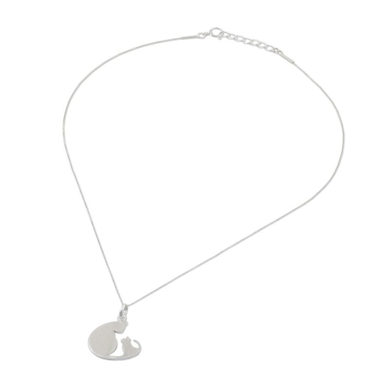 A mother cat and her kitten share a special bond in the pendant of this necklace from Thailand. Sarote Lochotinunt crafts his design of sterling silver with a shimmering brushed-satin finish.