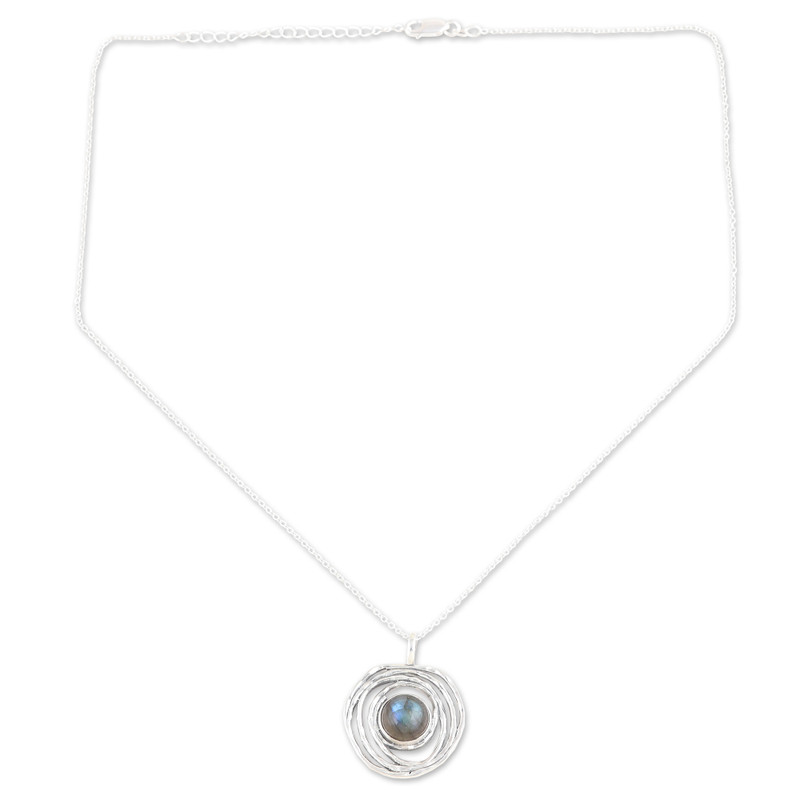 Shiny whirls of silver with a center stone of beautiful blue labradorite make for a lovely pendant!