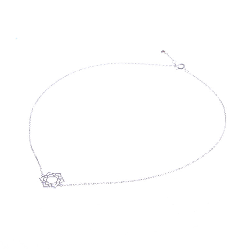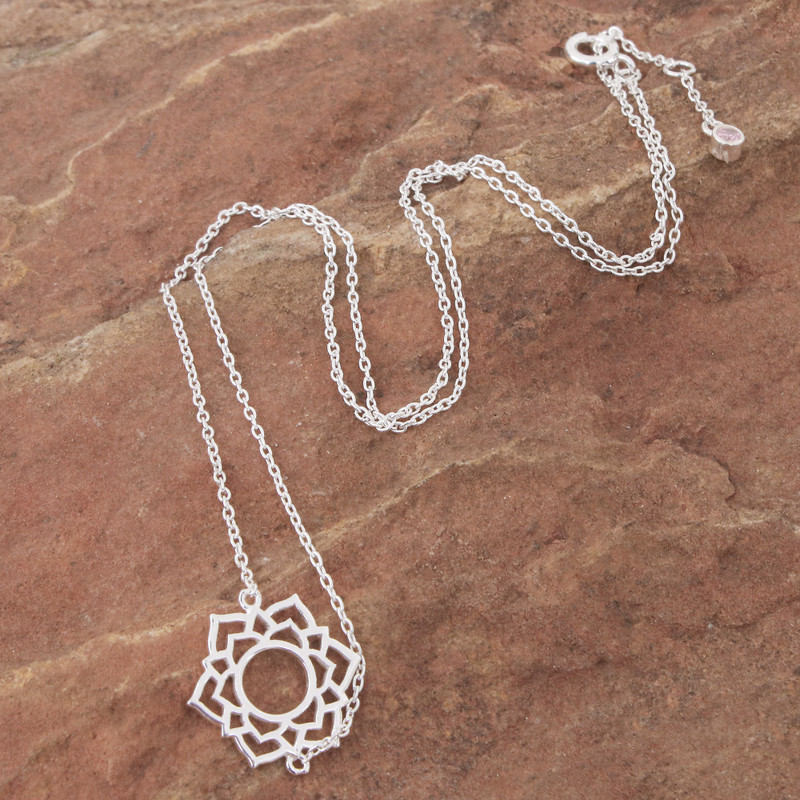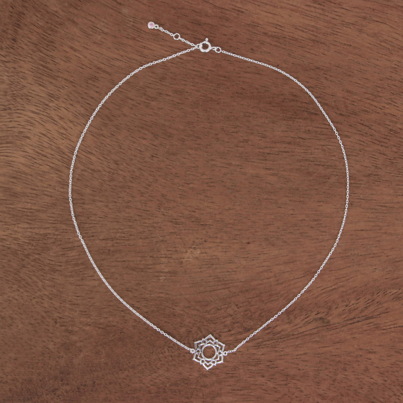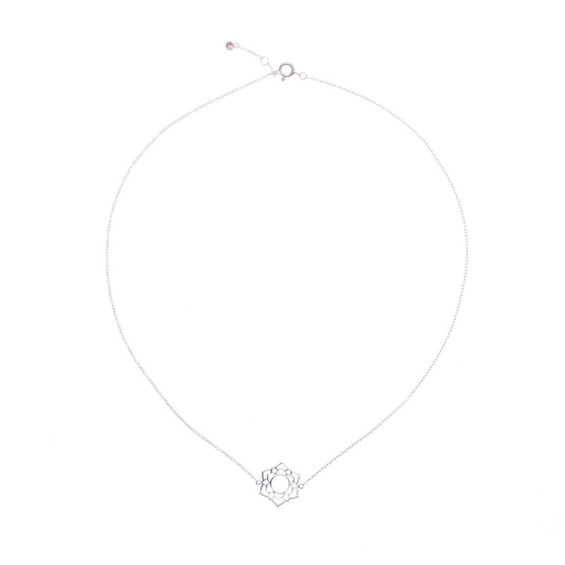 The chakra crown is often related to enlightenment and spiritual forces. Drawing inspiration from this traditional symbol, Thailand's Lalana crafts a charming sterling silver necklace featuring a chakra crown pendant. The final touch is in the pink cubic zirconia stone embellishing the extender.