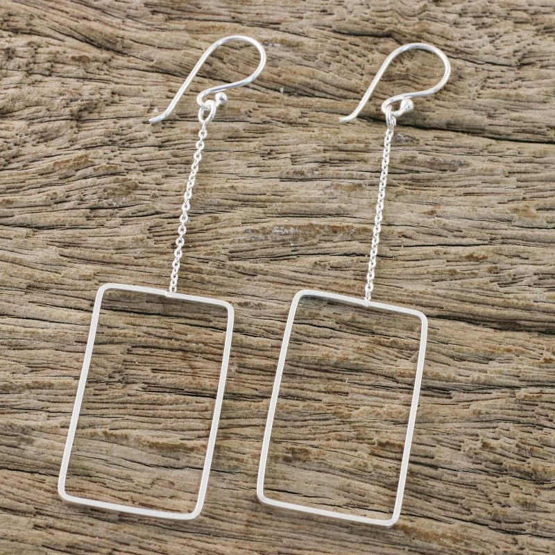 You can find our sterling silver dangle earrings 'Breezy Rectangle' by Lalana in jewelry categories such as Modern Earrings, No Stone Earrings, Silver Earrings, Sterling Silver Earrings and Dangle Earrings. Enjoy exploring these sections for other Novica treasures.