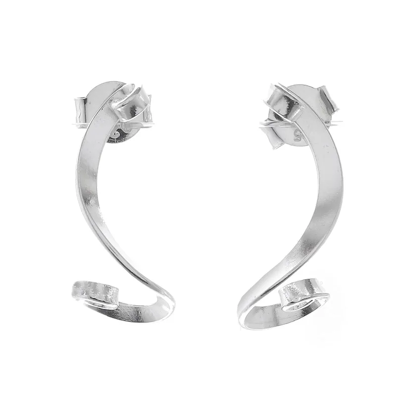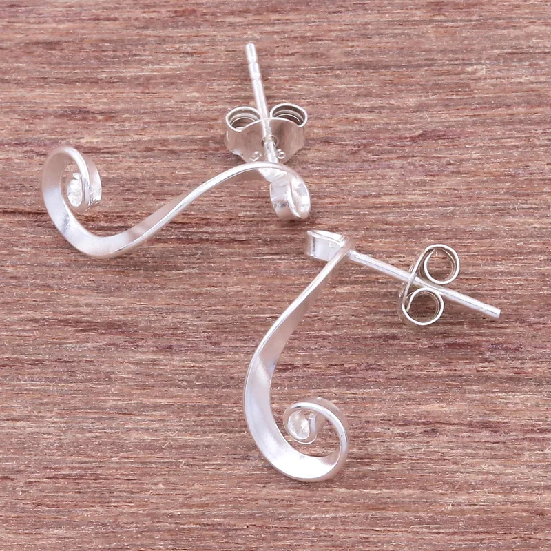 Coiling elegantly below the ears, two ribbons of sterling silver are crafted by hand. Thai artisan Lalana creates this fascinating pair of drop earrings, which is treated with a high-polish finish that reflects the light.