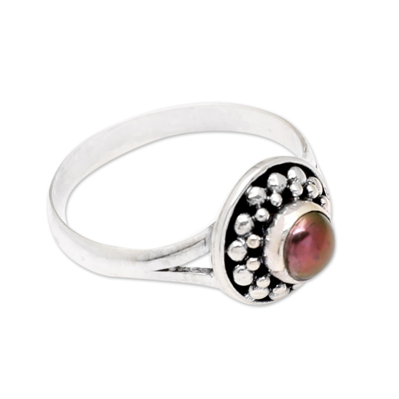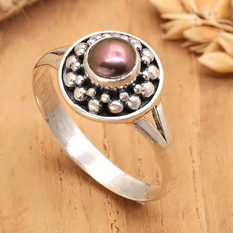This dreamy sterling silver single-stone ring features a delicate cultured pearl in a rich shade of brown surrounded by intricate silver beads that are meticulously crafted using the traditional Balinese granulation technique, showcasing the skill and artistry of local artisans. Add this must-have ring designed by Ketut Sulastri to your jewelry box to complement casual or formal looks.