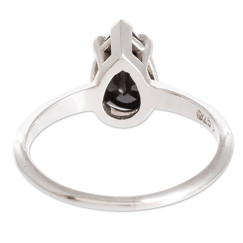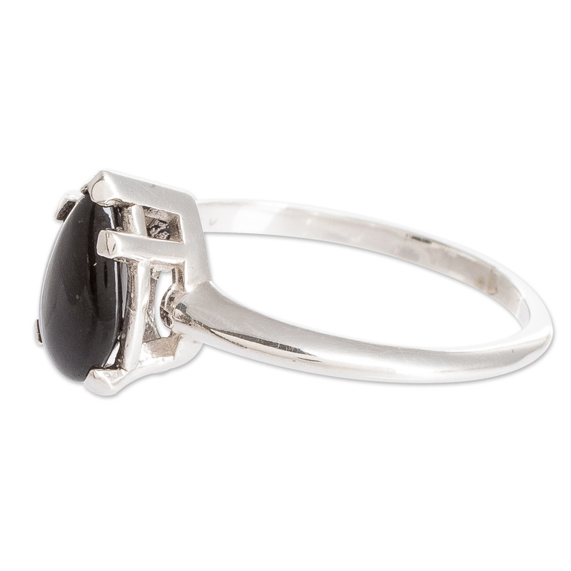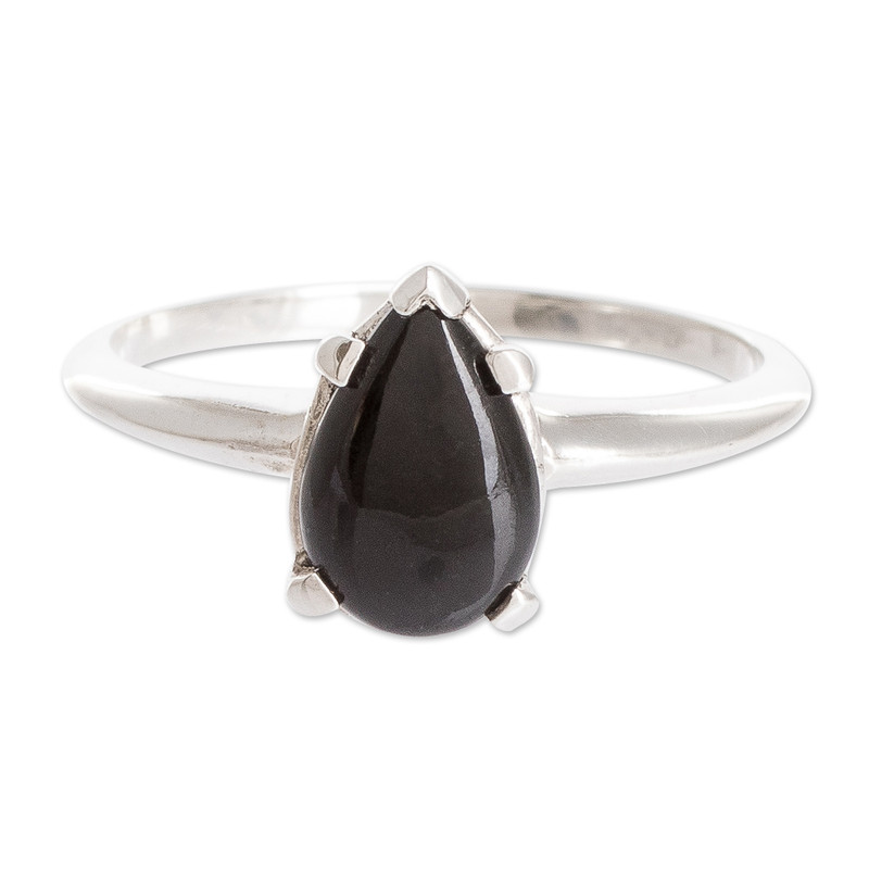 Backed by our 100% Happiness GuaranteeA single teardrop of black jade brightens this solitaire ring. Set in polished sterling silver, this Guatemalan jade is prized for its unique color and allure. The artisans at Migliozzi Studio handcraft this ring with classic appeal inspired by the stunning beauty of black jade.