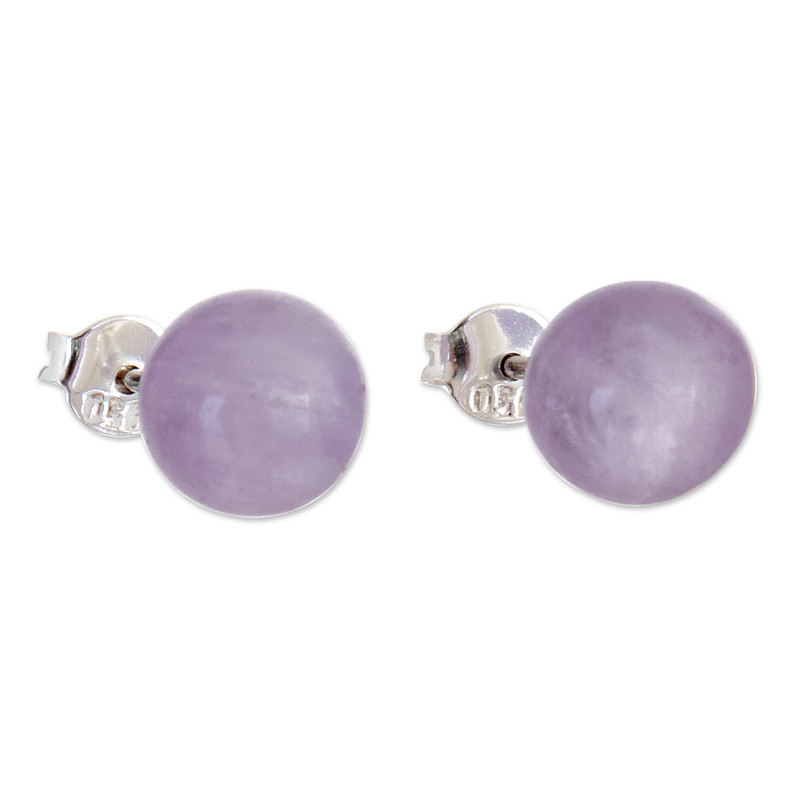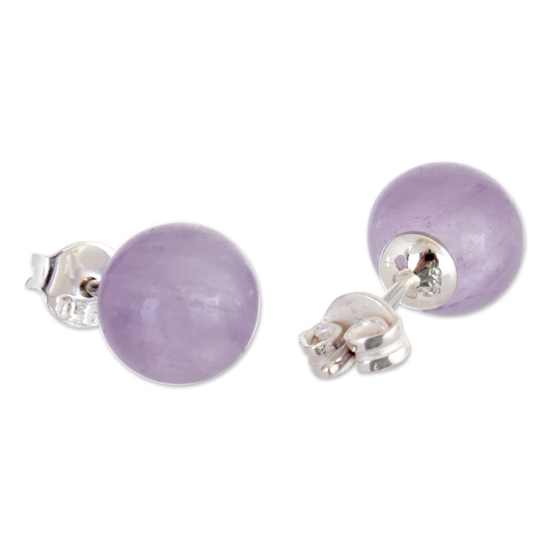 Amethyst is believed to help achieve calmness and attract good fortune and positive energies. Peru's Yan Fredy Bolivia uses this lovely gemstone for a pair of classic stud earrings crafted from polished sterling silver that adds to their sophistication and uniqueness.