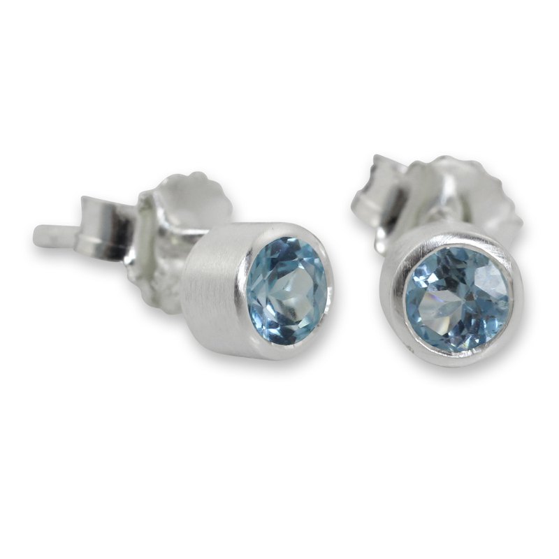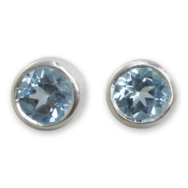 Backed by our 100% Happiness GuaranteeJantana designs earrings that sparkle with the unique light of blue topaz. Faceted to a kaleidoscopic effect, the crystalline gem is set on sterling silver studs that are crafted with a brushed satin finish.