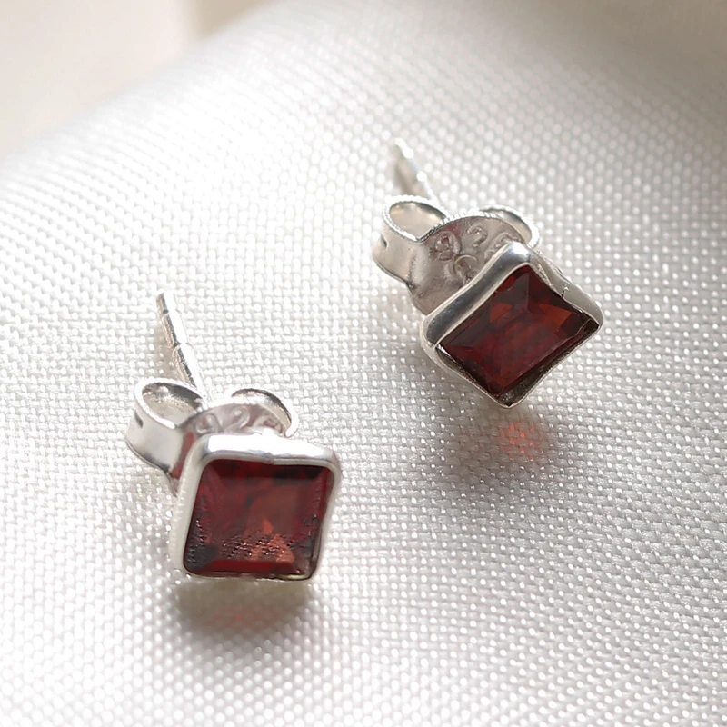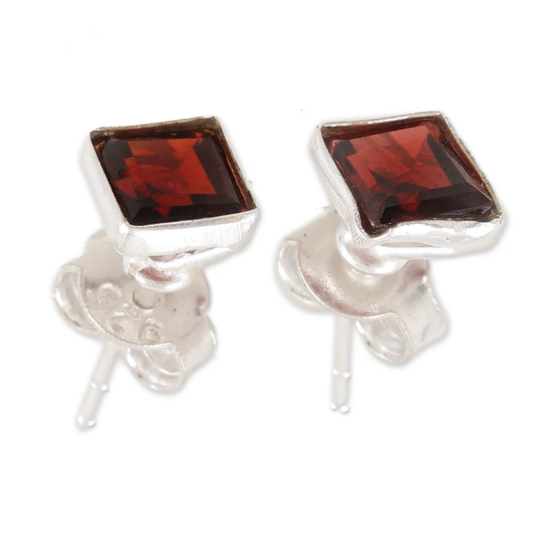 Add just the right amount of color to your look with this pair of stud earrings featuring gorgeous square garnet gemstones. Presented by India's Narayannii, the earrings are crafted from polished sterling silver for a classic, elegant style.