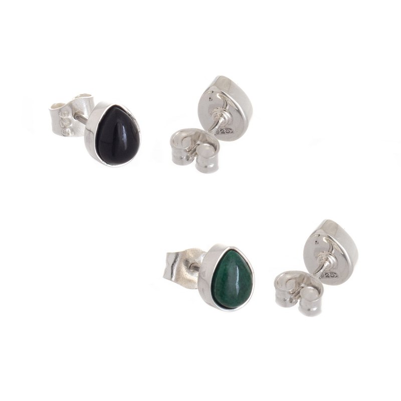 Subtle and versatile, these stud earrings from Fermin in Peru are great for everyday wear. The set includes two pairs of sterling silver earrings in teardrop shapes. One is set with jet-black obsidian and the other is set with natural chrysocolla.