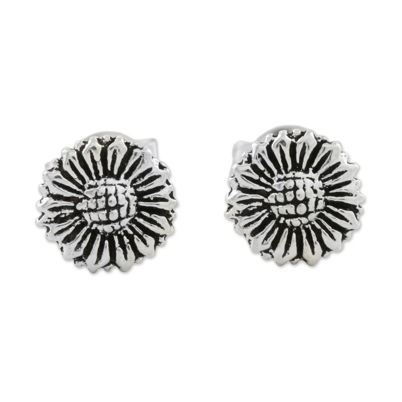 With a striking combination of finishes, two cute sunflowers are crafted of sterling silver. Thailand's Wadarat Supasirisuk presents these stud earrings, crafted by local artisans.
