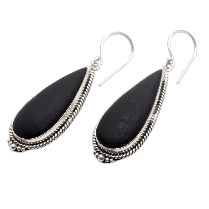 These splendid teardrop-shaped dangle earrings are crafted from exquisite lava stone and feature delicate sterling silver accents made with the granulation technique. Artisan Rupadana designs these earrings that pay homage to the mastery of traditional Balinese silversmith jewelry.
