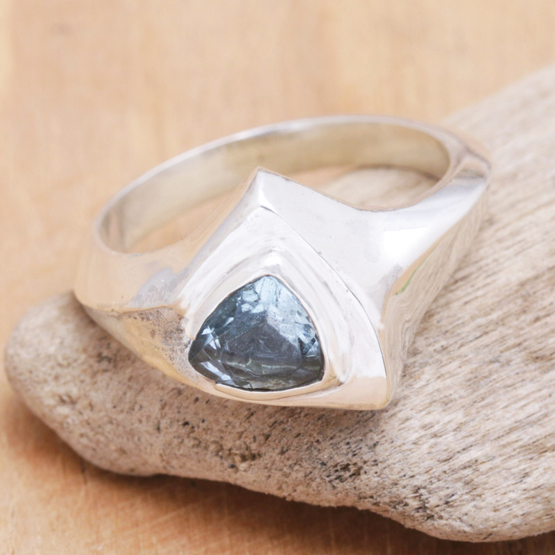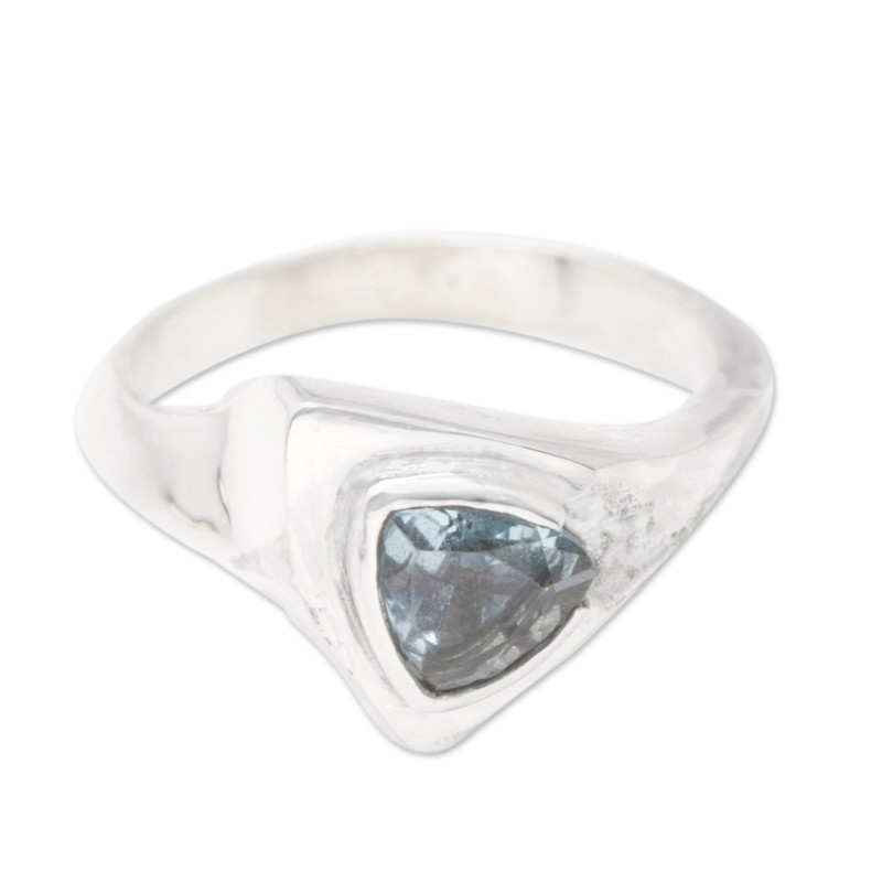 Backed by our 100% Happiness GuaranteeShaped like a triangle, this modern ring features the most alluring blue topaz gemstone as the focal point. Crafted in sterling silver with a lustrous finish, the gorgeous single stone ring is designed by artisan Ni Wayan Astiti in Bali with subtle elegance and glamour in mind.