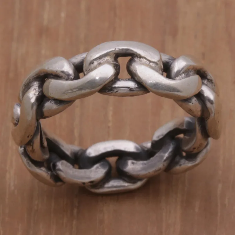 Bold chain links of sterling silver wrap around the finger, making the perfect accessory for both men and women. Crafted by Indonesian artisans, this band ring is presented by Komang Wijayana.