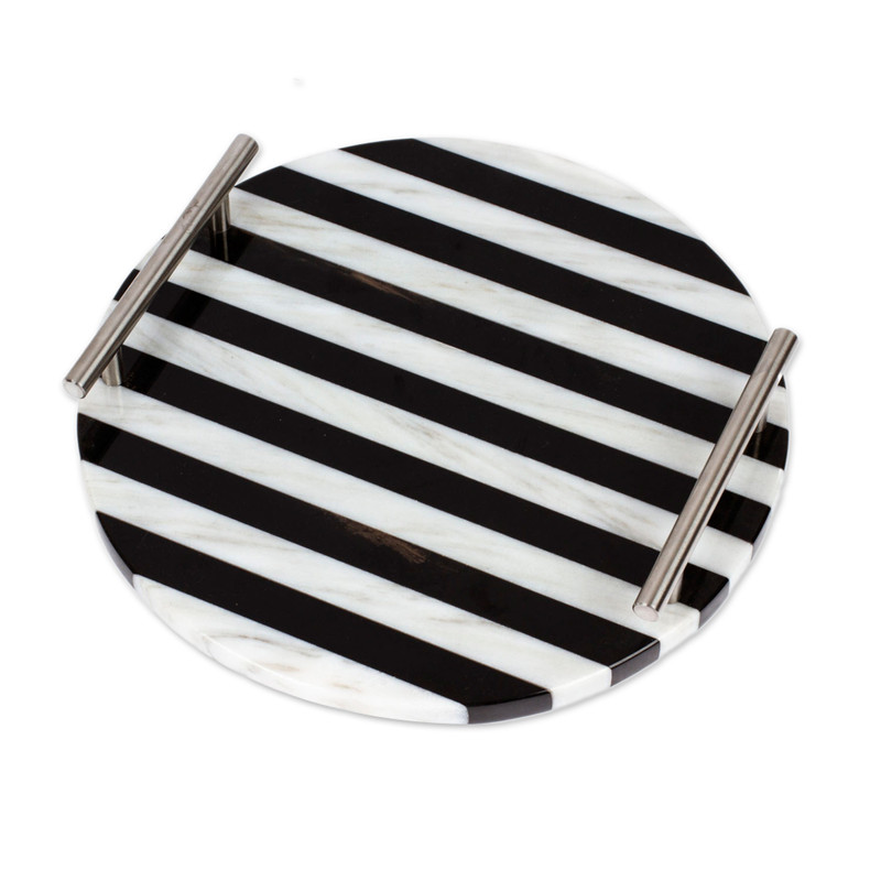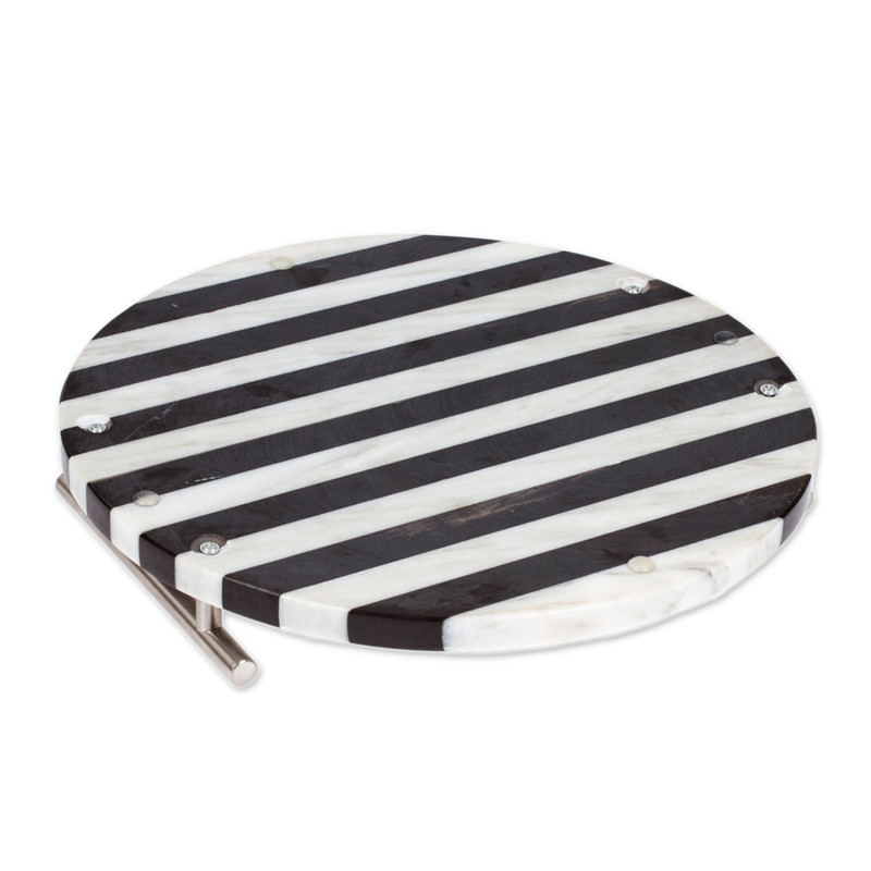 Backed by our 100% Happiness GuaranteeMarble's natural black and white hues decorate this avant-garde creation by Mexico's Sierra Family. Ideal for any occasion, the accessory complements its minimalist round design with a striped pattern and silver aluminum handles.