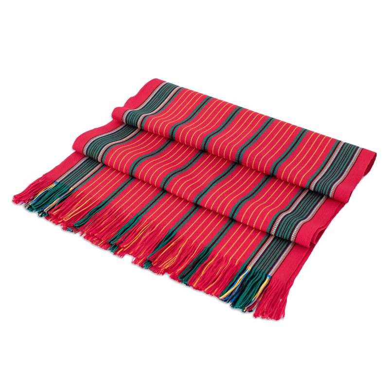 Delivery EstimateAt Christmastime or anytime, this elegant table runner makes a pretty addition to any table. Eladio Chiroy in Guatemala crafts the cotton table runner on a traditional loom in stripes of red and green.