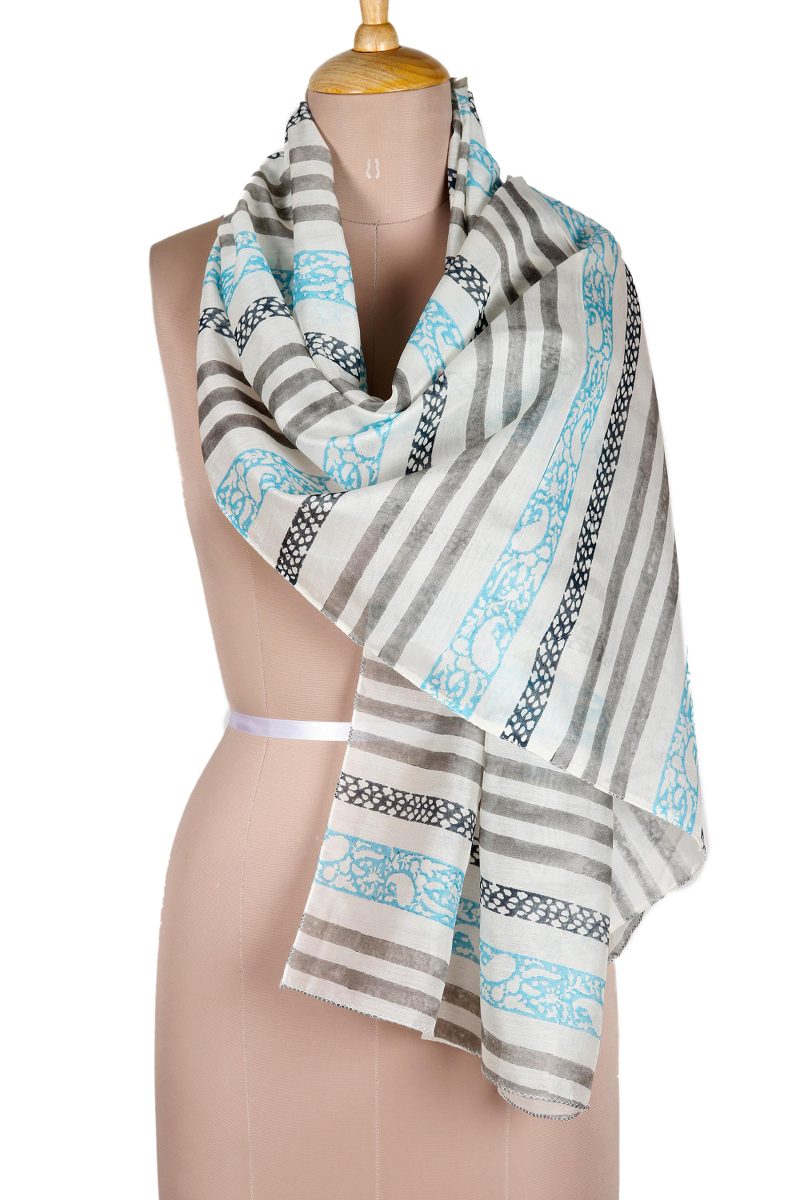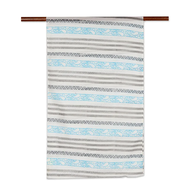Backed by our 100% Happiness GuaranteeDesigned by Krishna and Sharda, this breezy scarf is crafted from chanderi cotton by Indian artisans. Known for its lightweight texture and fine, luxurious feel, chanderi is a weaving technique that borrows its name from a small town in central India. Stone grey stripes alternate with a pretty paisley pattern that brings a lighthearted vibe to the sheer scarf.