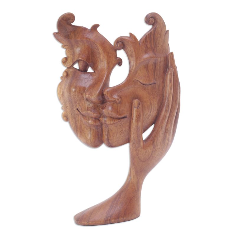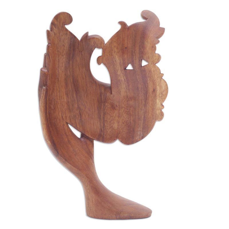 Backed by our 100% Happiness GuaranteePresented by Bali's Eka, this elegant sculpture comes in a natural brown color, making a tasteful addition to your home decor. The piece features two female faces joined in a charming pattern, symbolizing the joys of female cooperation and sisterhood.