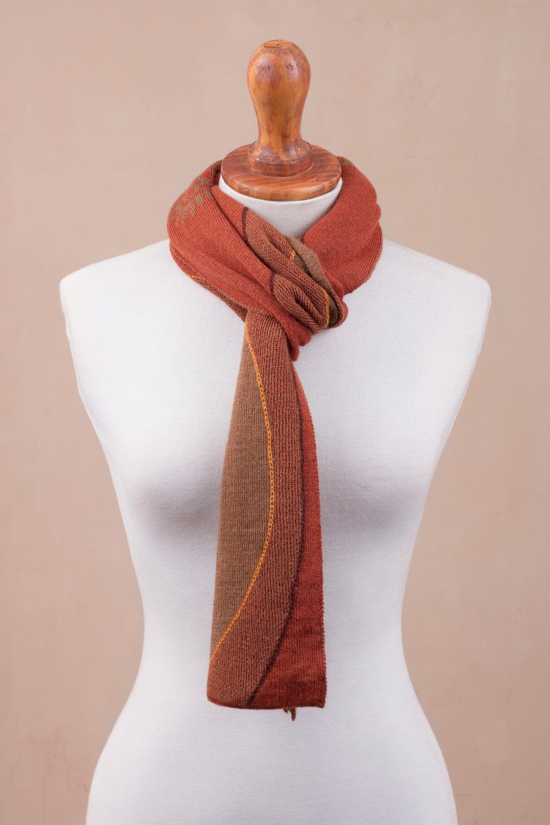 You can find our alpaca blend scarf 'Pumpkin and Sepia Cosmovision' by Waldo Berrios in accessories categories such as Wool Scarves and Wrap Scarves. Enjoy exploring these sections for other Novica treasures.