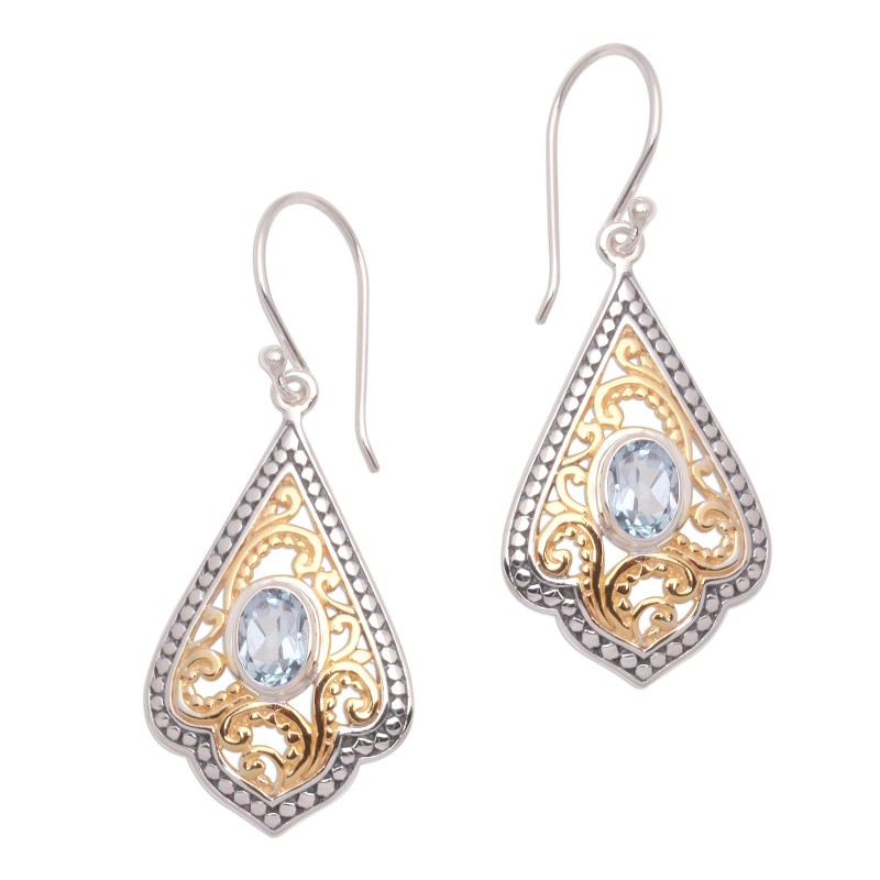 You can find our gold accented blue topaz dangle earrings 'Glamorous Kites' by Ari Gunawan in jewelry categories such as Gemstone Earrings, Blue Topaz Earrings, Sterling Silver Earrings and Dangle Earrings. Enjoy exploring these sections for other Novica treasures.