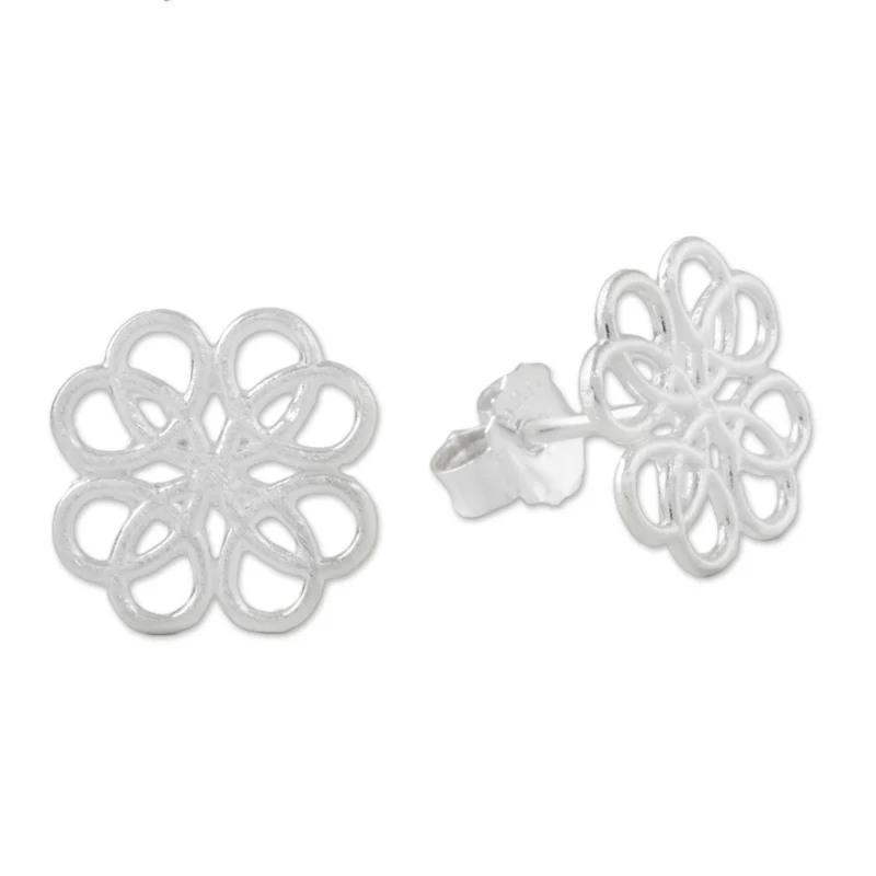 Ribbons of sterling silver arc away and back into the center in overlapping loops to create this pair of stud earrings. Designed by Thai artisan Sarote Lochotinunt, these lovely earrings celebrate the beauty of pattern and symmetry.