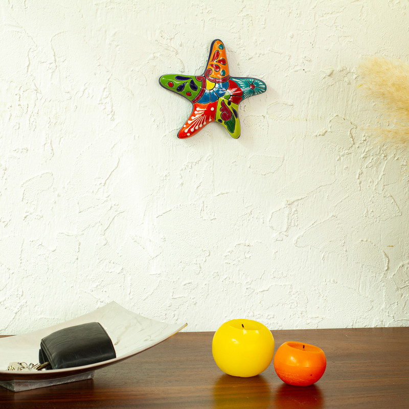 Bringing the beauty of the ocean to your home, this ceramic wall sculpture is created by Mexican artisan Juana Ponce. This cute starfish is painted by hand with colorful floral motifs in the traditional style of Talavera handicrafts, adding a touch of culture to any space.