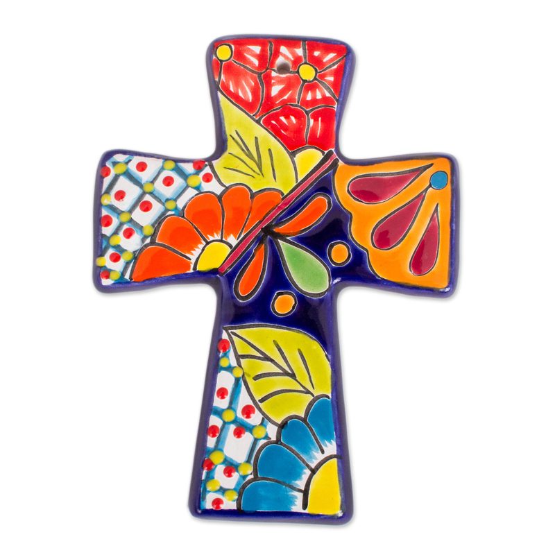 Crafted from ceramic and painted by hand in the style of Talavera handicrafts, this wall cross is created by Mexican artisan Juana Ponce. She draws inspiration from traditional Spanish designs to create this faithful piece of wall decor.