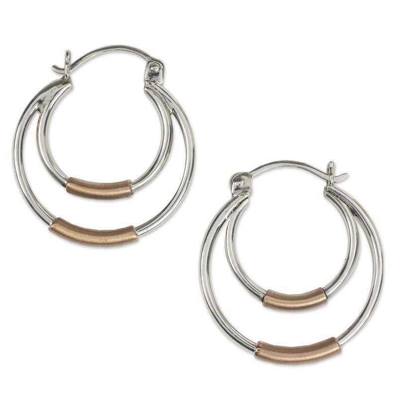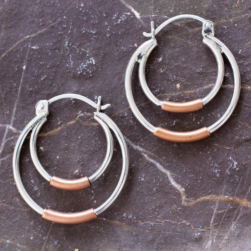 Backed by our 100% Happiness GuaranteeFirst mined during the Spanish colonial period in Mexico, silver has long been a rich natural resource in the Taxco region. Today artisans like Guillermo Arregui merge traditional silver techniques with a contemporary aesthetic. Brushed copper accents orbit dual silver hoops in Arregui's subtly celestial design.