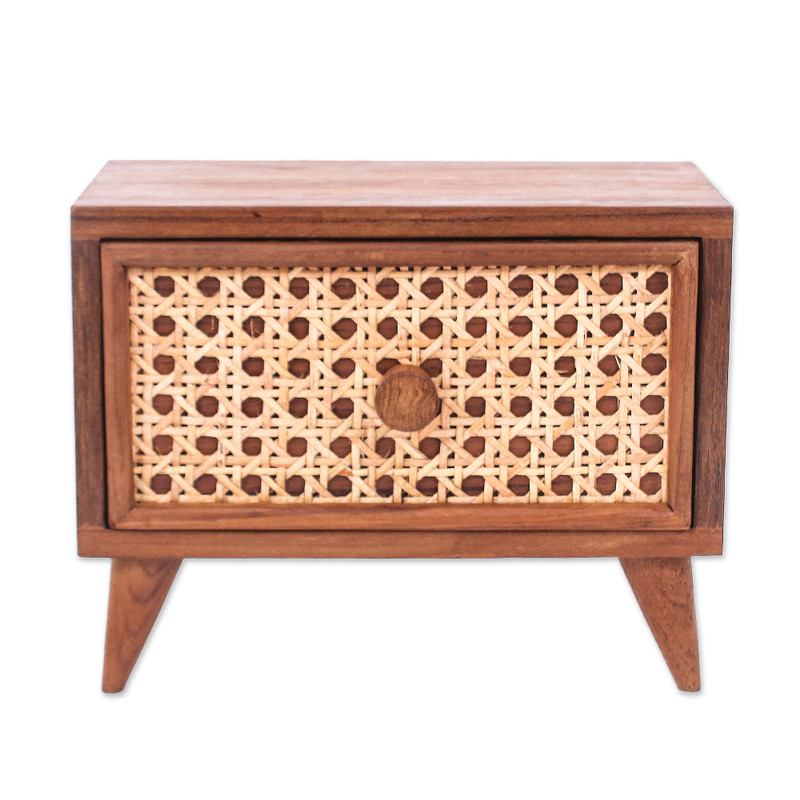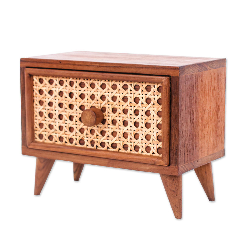 Delivery EstimateKeep your jewels neat with this exquisite jewelry box from Thailand's Arnon Thongkaew. Crafted from natural teak wood, the jewelry box comes equipped with a drawer for keeping your accessories in a secure and handy place. A woven pattern crafted from rattan fiber adds a timeless appeal to the design, making it perfect to blend with several decor themes.