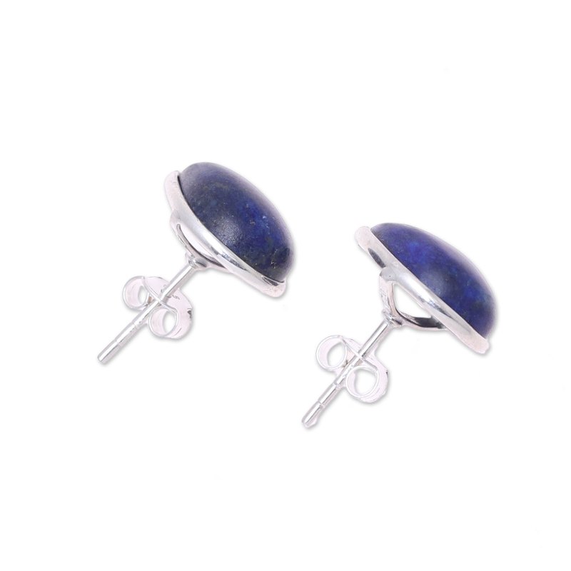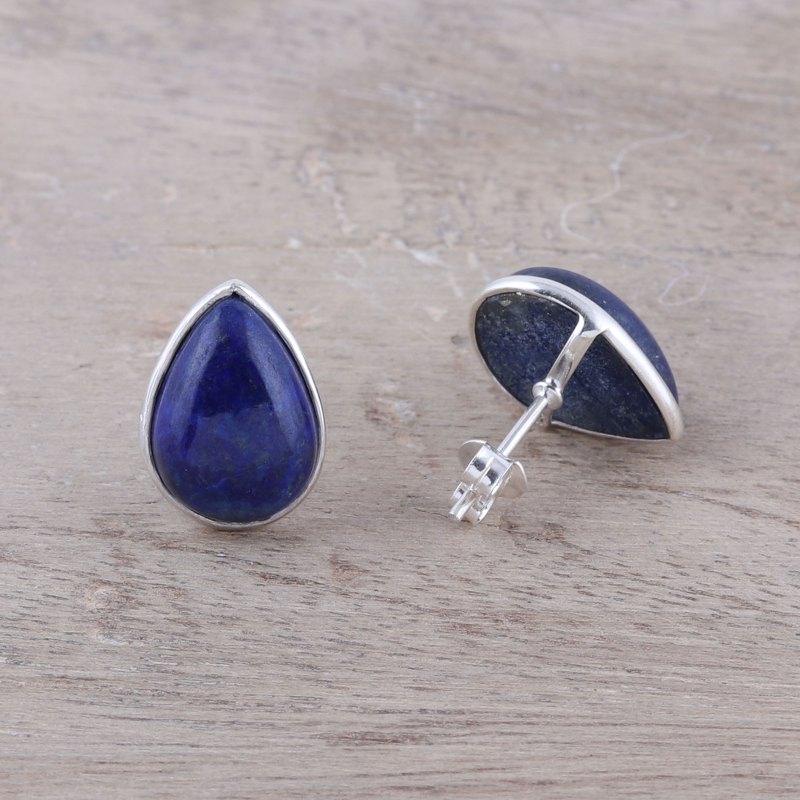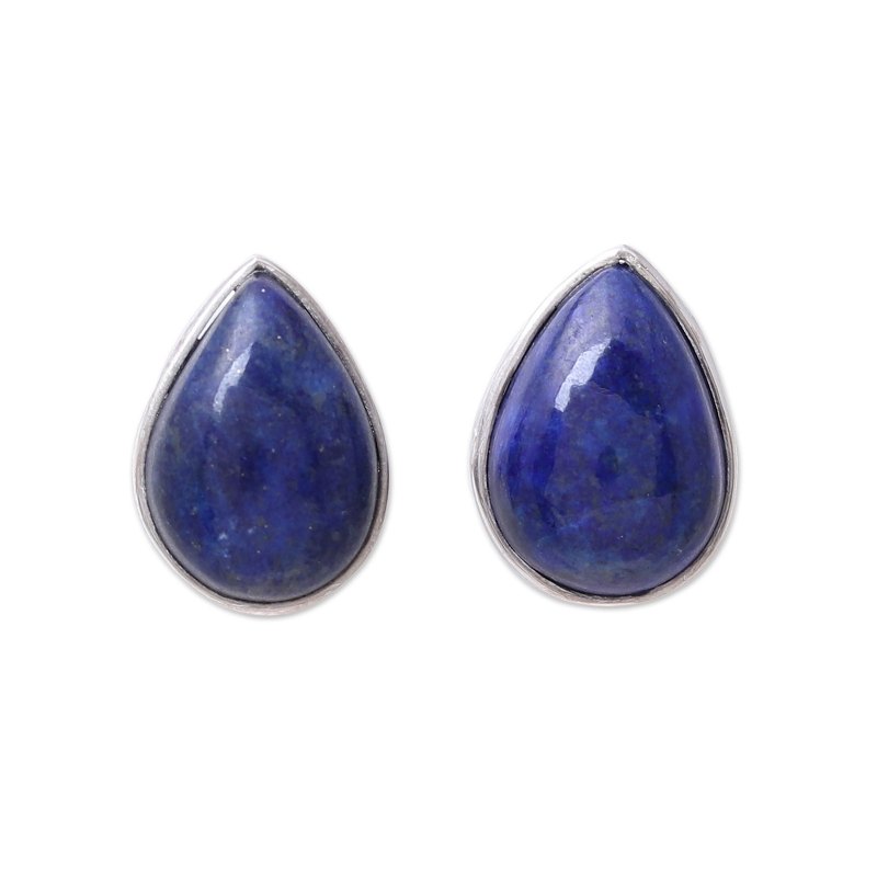 Carved from lapis lazuli that gleams deep blue, two mystic tears adorn the ears with stunning beauty. Indian artisans craft these earrings, framing each stone with high-polish sterling silver. Neeru Goel presents this accessory.