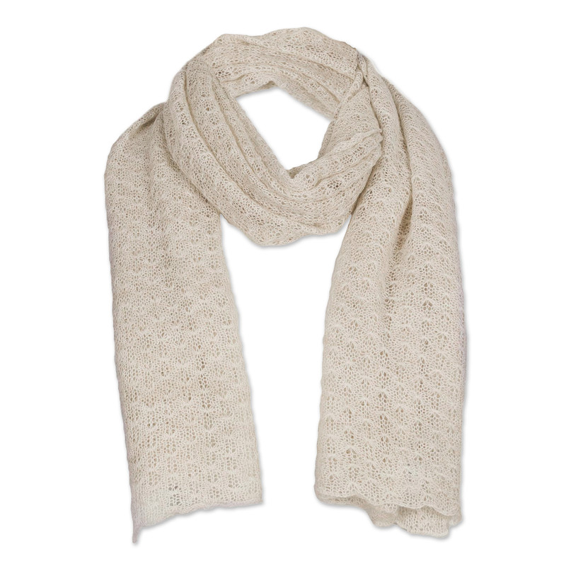 I was looking for some warm soft scarf, for covering my head in church and outside during winter time. I ordered Champagne color and its exactly looks like on NOVICAs website. The scarf is fine, very soft, and elegant. I can feel, its really from baby alpaca fur. It feels wonderful on my skin. Also, I can wear it as a scarf. Thanks NOVICA.