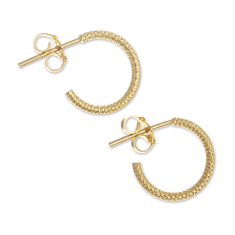 Backed by our Happiness GuaranteeA diamond-textured surface lends these beautiful earrings extra shine. Marianela Vargas in Peru crafts the half-hoop earrings from 18k gold-plated sterling silver.