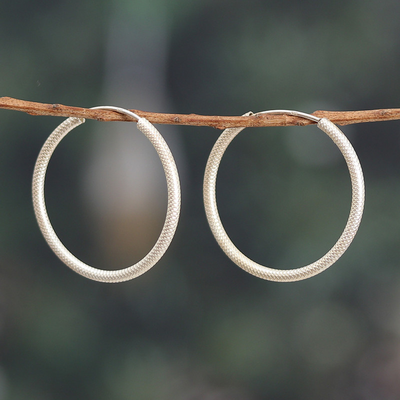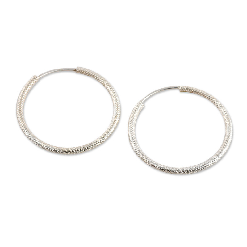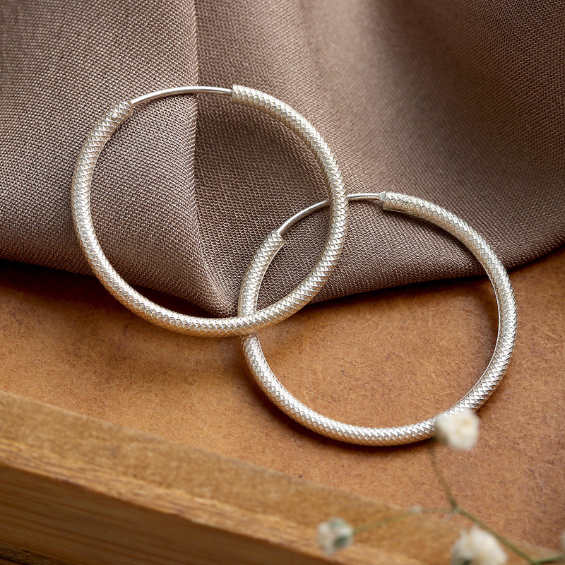 Your everyday style will never be the same thanks to these versatile hoop earrings, a classic accessory that never goes out of fashion. India's Parul presents this stunning sterling silver design featuring a blend of polished and textured finishes for a touch of contemporary elegance.