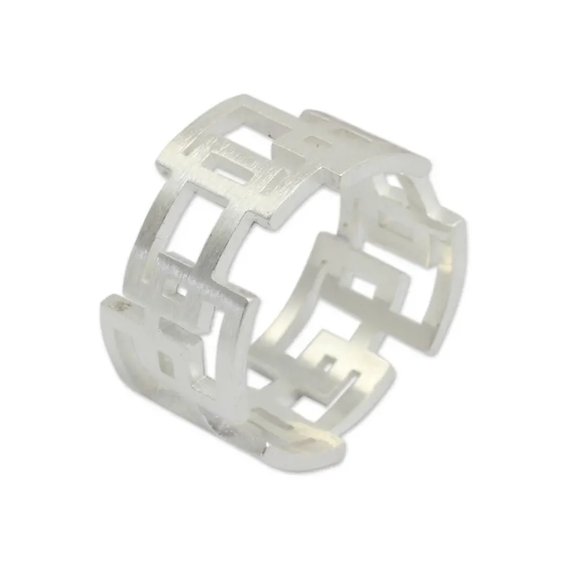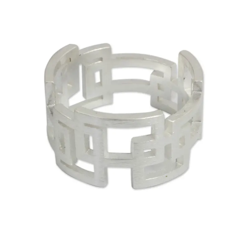 Backed by our 100% Happiness GuaranteeTaking her inspiration from nature, Jantana creates a delightfully modern ring. Intertwining rectangles are cut by hand from sheets of silver and given a satiny brushed texture on the exterior.