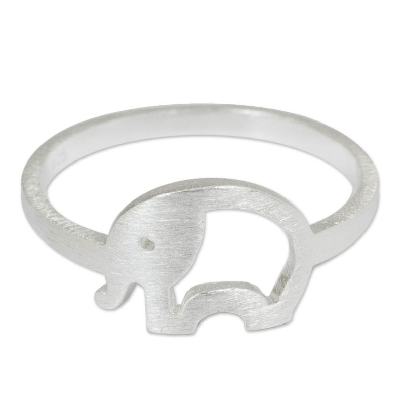 Jantana shares her passion for Thai elephants with the sweet design of this ring. Created in openwork, the elephant crowns a handcrafted sterling silver ring with a brushed satin finish exterior.