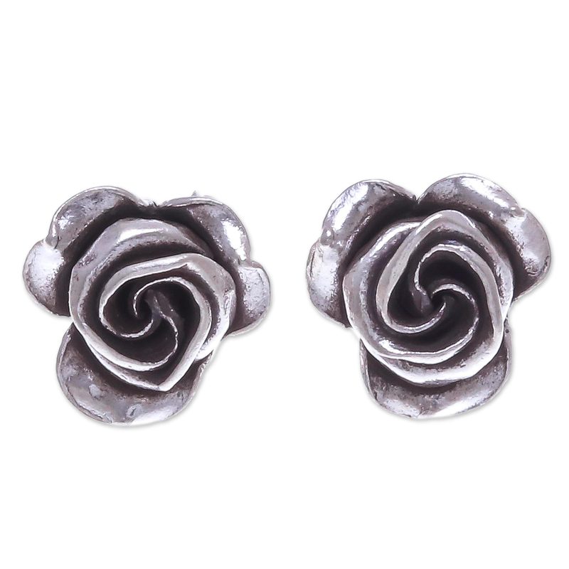 Delicate roses blossom in these pretty stud earrings from Thailand. Pakaon Sojintarit works with Karen hill tribe artisans who create each 950 silver flower by hand. The petite roses pose on sterling silver posts.