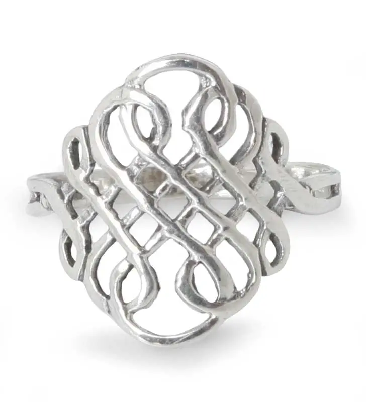 Backed by our 100% Happiness GuaranteeEvoking a Celtic knot, silver ribbons intertwine in an intricate thistle pattern. This delightful cocktail ring comes from Wadarat Supasirisuk in Thailand.