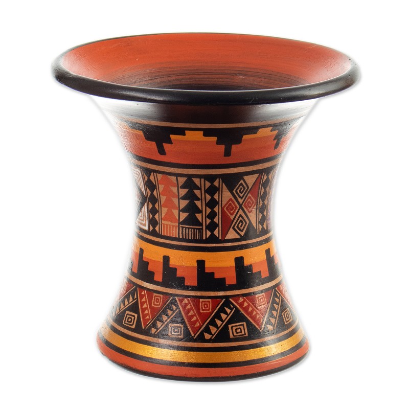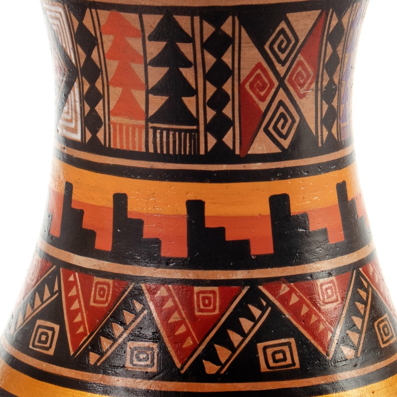 The Saga of the Ayar Brothers, telling the origins of Cusco, gives life to a sublime series of decorative vases that pay homage to the ancient Empire of the Incas. Titled Ayar Manco in honor of the surviving brother that sunk his golden cane on the sacred mountains, Peruvian artisans Rolando and Luis' creation comes in a cylindrical shape imitating the classic kero vases, all embellished with a warm palette that enhances each geometric motif typical of the Andean region.