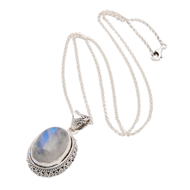 You can find our rainbow moonstone pendant necklace 'Queen Moonlight' by Buana in jewelry categories such as Gemstone Necklaces, Birthstone Necklaces, Balinese Traditional Silver Necklaces, Rainbow Moonstone Necklaces and Silver Necklaces. Enjoy exploring these sections for other Novica treasures.