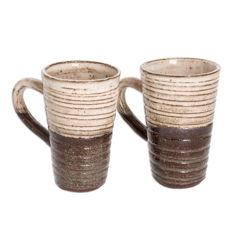 Backed by our 100% Happiness GuaranteeRegina Aguilar, from the prosperous lands of Honduras, embellishes your days with an exquisite display of traditional pottery artistry. The artisan works with three types of regional ceramic to craft this pair of mugs, perfect for those warm morning drinks. The pieces boast a palette of ivory and brown hues, recreating the country's authentic aura.