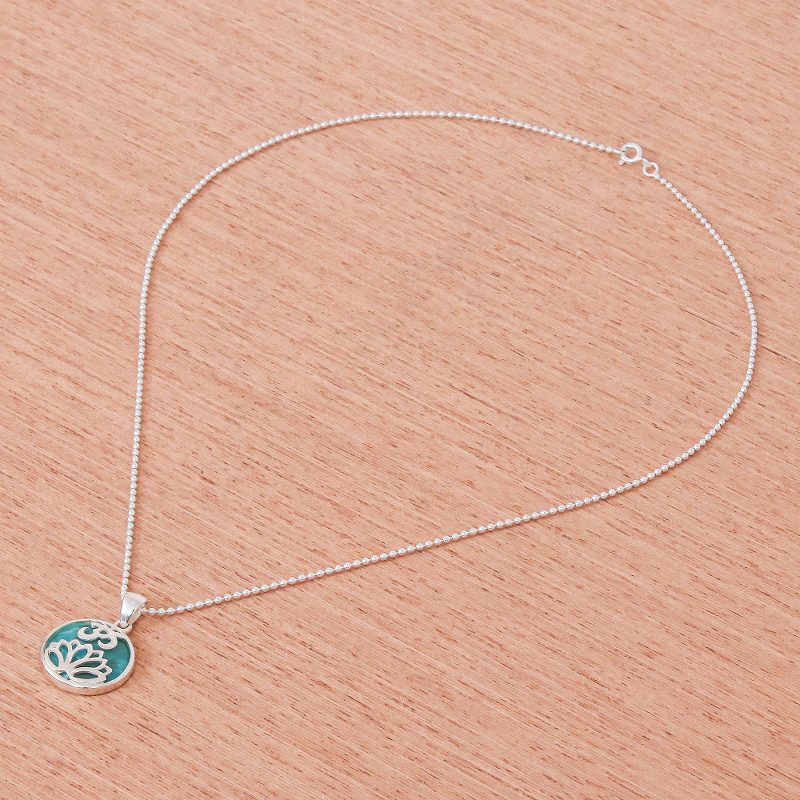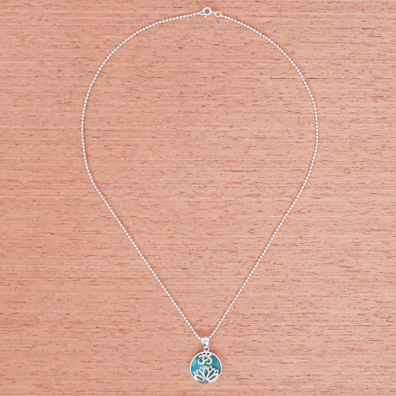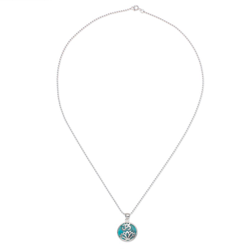 Get into the om spirit with Michael Krainer's beautiful pendant necklace. In his Thai studio, the artisan crafts the round pendant from cool, natural turquoise and gleaming sterling silver accents. The pendant swings from a sterling silver ball chain that fastens with a spring ring clasp.