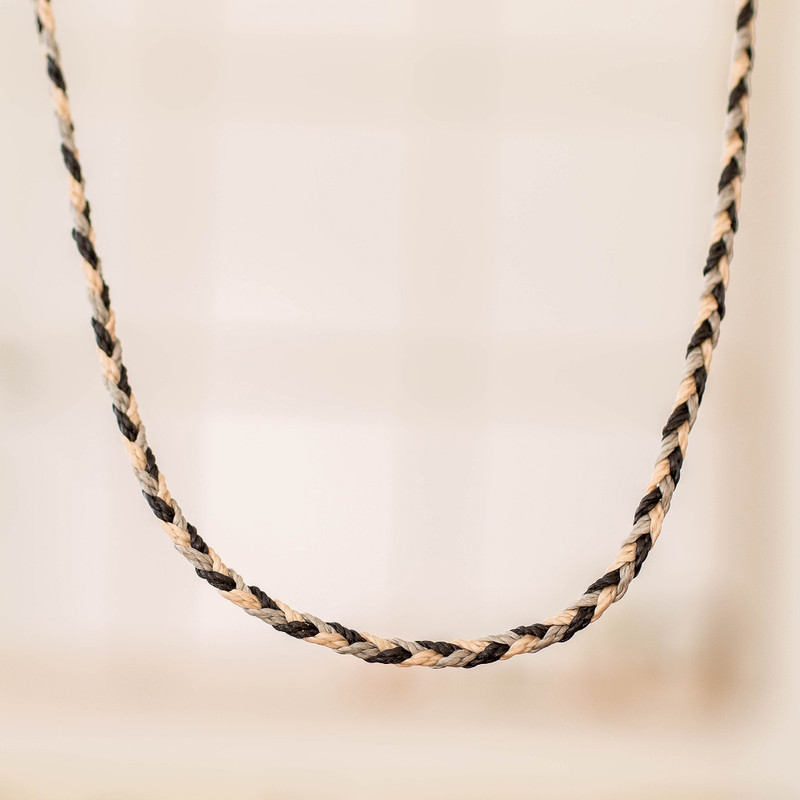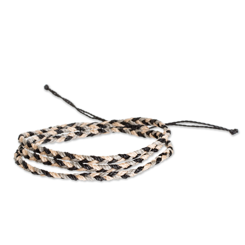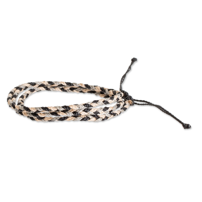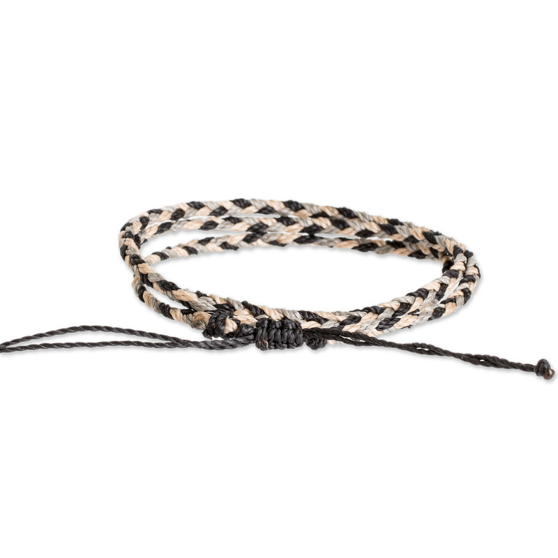 Delivery EstimateUnleash your creativity with this multifunctional masterpiece from Guatemala's Erick and Ivania. The sleek black, grey and beige macrame cords intertwine to create a versatile accessory that transitions effortlessly from wrist to neck. As an adjustable wrap bracelet, it adds a pop of color to any outfit, while its alternative use as a strand necklace offers a fresh way to express your style. This eye-catching and innovative design is a true wardrobe essential.