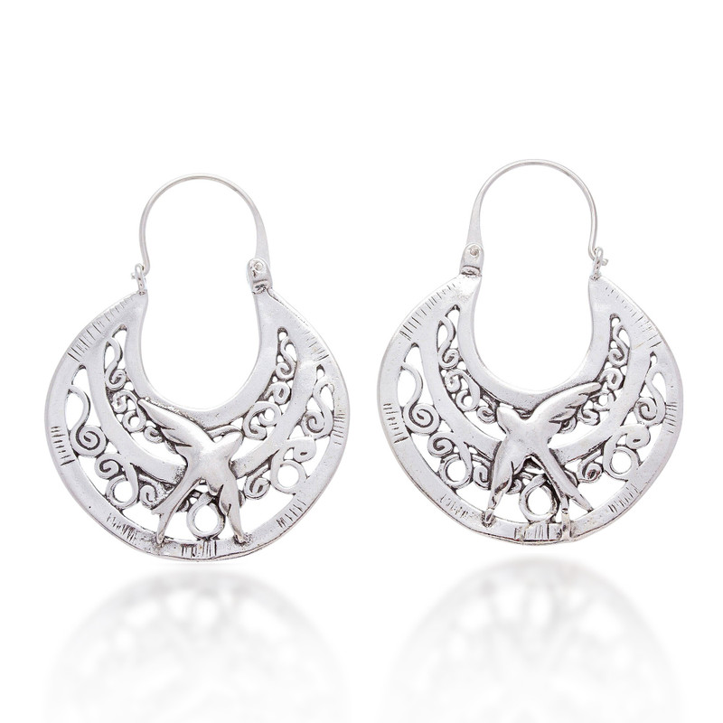 Twittering excitedly, graceful swallows soar and dive. A symbol of faithfulness, the tiny migratory bird returns each year to the family nest. Gianluca Anzani adorns sterling silver crescents with the lovely, long-tailed creatures.