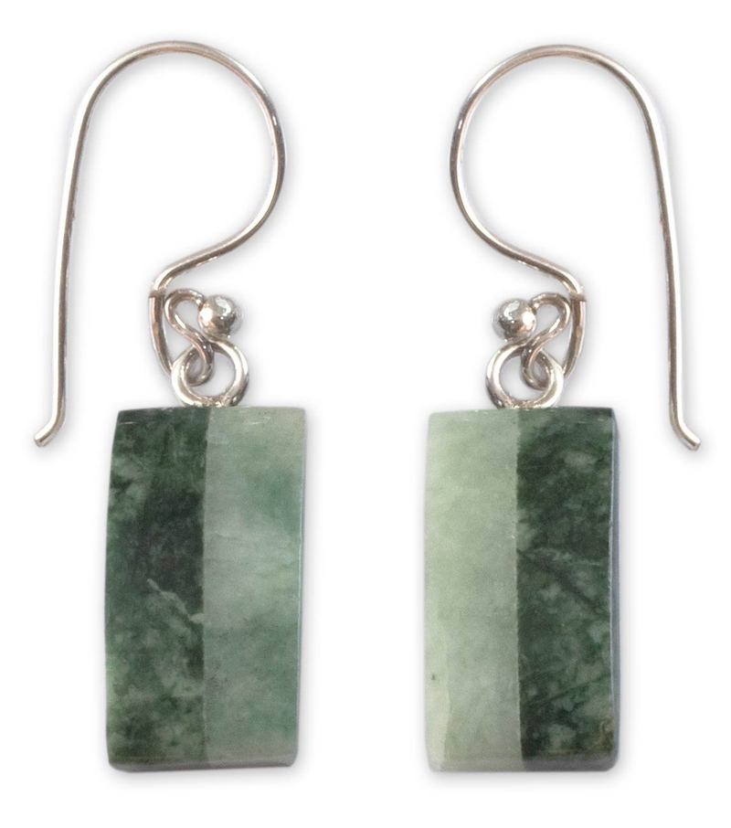 Backed by our 100% Happiness GuaranteeRuben and Gilda Perez showcase the natural beauty of jade in the design of these earrings. Crafted by hand with sterling silver hooks, the earrings glow with dark and green jade, known to the Maya people as Ya'ax Chich. They regarded jade as sacred, the source of life and fertility.