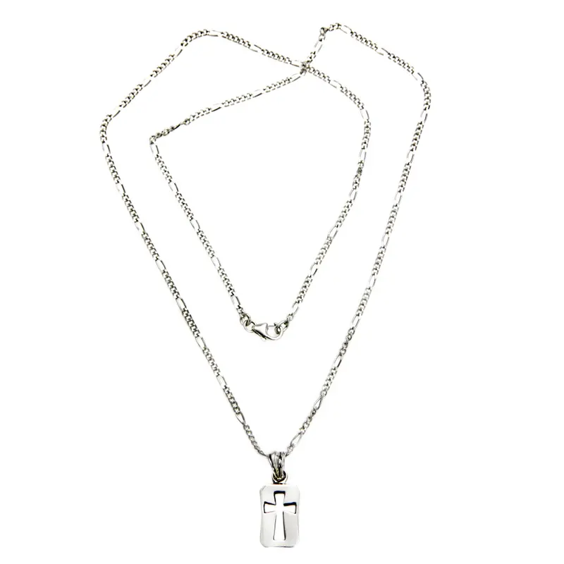 Backed by our 100% Happiness GuaranteeOf understated elegance, this cross necklace lures into admiring fascination. Henry Anthony Sanny crafts the sterling silver necklace by hand featuring a singular cross in openwork.
