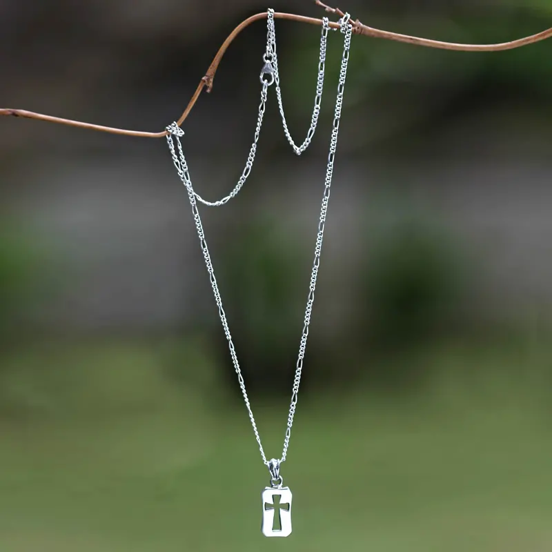 Bought this to replace a cherished cross necklace that was lost. The design is unique, subtle and unlike any other cross necklace. The length is on the shorter side, which I preferred. The chain is also unique and unlike many other designs. This came in a neatly packed box with the Novica label and description, information on the maker, and a nice handwritten note from on a Bali postcard. Product and presentation well done! I recommend for unisex and all ages.