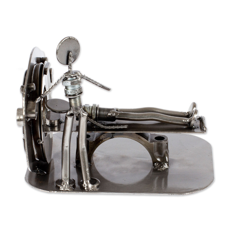 With a passion for eco-friendliness and an eye for unique art, artisan Armando Ramirez of Mexico crafts this sculpture from upcycled metal auto parts. A clever piece of decor, the sculpture depicts two figures performing an MRI.